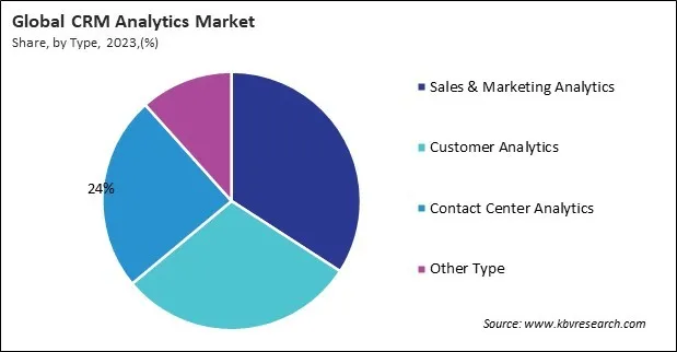 By type, the market is divided into sales & marketing analytics, customer analytics, contact center analytics, and others. The sales & marketing analytics segment garnered 34% revenue share in the market in 2023. This segment's growth is fueled by businesses increasingly focusing on data-driven strategies to optimize their sales and marketing efforts. Organizations use sales and marketing analytics to monitor campaign performance, identify high-value prospects, and forecast sales trends.