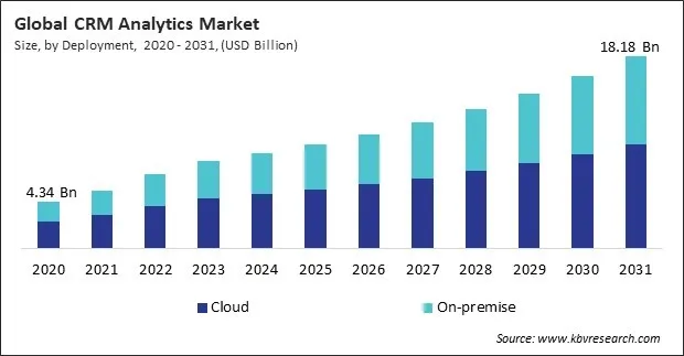The Global CRM Analytics Market size is expected to reach $18.18 billion by 2031, rising at a market growth of 10.7% CAGR during the forecast period.
