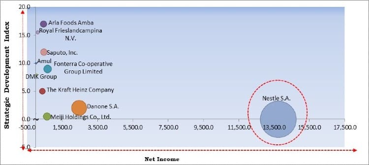 The major strategies followed by the market participants are Acquisition. Based on the Analysis presented in the Cardinal matrix; Nestle S.A. is the major forerunner in the Dairy Products Market. Companies such as Arla Foods Amba, Royal FrieslandCampina N.V., Saputo, Inc., and Amul are some of the key innovators in the market.