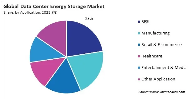 On the basis of application, the data center energy storage market is segmented into BFSI, manufacturing, retail & e-commerce, healthcare, entertainment & media, and others. In 2023, the manufacturing segment attained 21% revenue share in this market. The sector's reliance on advanced automation, real-time data analytics, and IoT technologies drives the need for robust and efficient energy storage solutions. Modern manufacturing processes increasingly depend on continuous data flow for monitoring production lines, optimizing operations, and ensuring quality control.