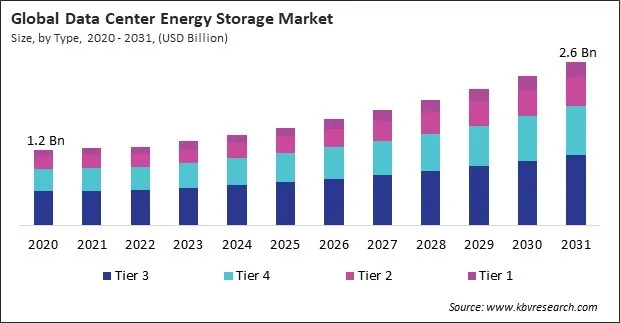 The Global Data Center Energy Storage Market size is expected to reach $2.6 billion by 2031, rising at a market growth of 8.8% CAGR during the forecast period.