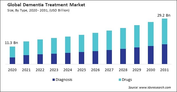 The Global Dementia Treatment Market size is expected to reach $29.2 billion by 2031, rising at a market growth of 7.4% CAGR during the forecast period.