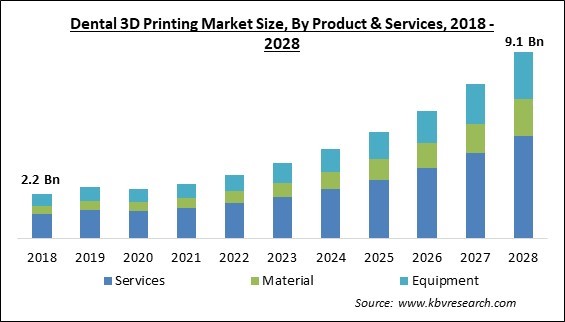 The Global Dental 3D Printing Market size is expected to reach $9.1 billion by 2028, rising at a Market growth of 19.7% CAGR during the forecast period.
