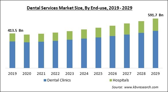 The Global Dental Services Market size is expected to reach $591.7 Billion by 2029, rising at a market growth of 5.0% CAGR during the forecast period.