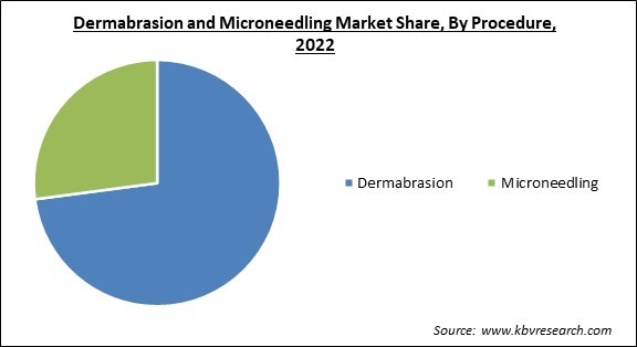 Based on procedure, the dermabrasion and microneedling market is categorized into dermabrasion and microneedling. The dermabrasion segment garnered the highest revenue share in the dermabrasion and microneedling market in 2022. The segment is expanding as a result of an increase in the prevalence of skin problems such as acne scars as well as an advancement in technological capabilities for the creation of more advanced dermabrasion treatments. Dermabrasion is a form of mechanical exfoliation involving rotating equipment to remove the topmost layers of skin, most frequently on the face.