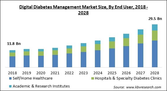 The digital diabetes management market size is projected to reach USD 29.5 billion by 2028.