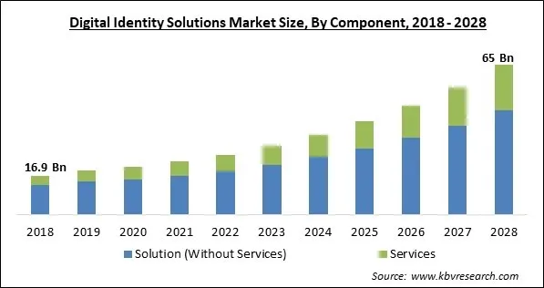 The Global Digital Identity Solutions Market size is expected to reach $65 billion by 2028, rising at a Market growth of 16.6% CAGR during the forecast period.