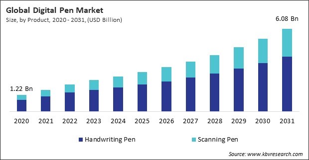 The Global Digital Pen Market size is expected to reach $6.08 billion by 2031, rising at a market growth of 13.0% CAGR during the forecast period. In the year 2023, the market attained a volume of 38,321.3 thousand units, experiencing a growth of 21.1% (2020-2023).