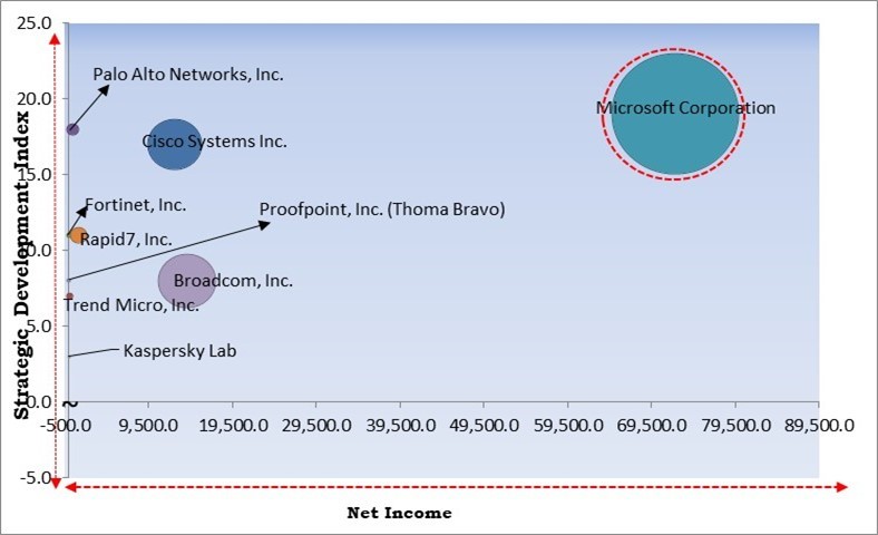 Palo Alto Networks, Inc., Microsoft Corporation, Cisco Systems, Inc., Trend Micro, Inc., Proofpoint, Inc. (Thoma Bravo), Fortinet, Inc. Broadcom, Inc., RSA Security LLC (Symphony Technology Group), Rapid7, Inc., Kaspersky Lab