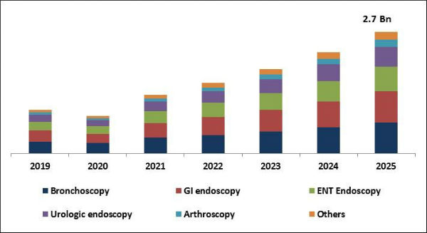 The Global Disposable Endoscopes Market size is expected to reach $2.7 billion by 2025, rising at a market growth of 18.7% CAGR during the forecast period. An endoscope is an instrument comprised of a light fiber and a camera-connected image fiber that captures high-resolution images within the body and sends them to an attached device for viewing. Modern endoscopes are completely versatile, offering deeper visibility into the inner body and capturing images for a clearer view in high definition.