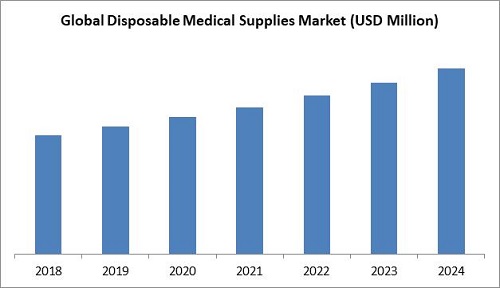 The Global Disposable Medical Supplies Market size is expected to reach $89.0 billion by 2024, rising at a market growth of 7.7% CAGR during the forecast period. The disposable medical supplies include blood glucose procedure kits, test strips, trays and conventional syringes with needles, facemasks, prefilled syringes, isolation gowns, disposable medical catheters, adult incontinence products, wound care products, surgical drapes, medical gloves, disposable contact lenses and lancing devices. Disposable medical products play a critical role in every medical, dental, and veterinary practice. The need for disposable medical supplies has witnessed consistent growth, as hospitals and outpatient facilities are implementing stringent infection prevention safety measures to be at par with the standards. Growing incidence of disease & disorders and rising aging population are the factors that drive the growth for disposable medical supplies market.