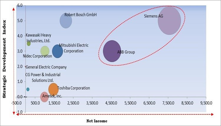 The market research report covers the analysis of key stake holders of the market. Key companies profiled in the report include Robert Bosch GmbH, Toshiba Corporation, ABB Group, Siemens AG, Nidec Corporation, General Electric (GE) Co., CG Power & Industrial Solutions Ltd. (Murugappa Group), Mitsubishi Electric Corporation, Ametek, Inc., and Kawasaki Heavy Industries, Ltd.