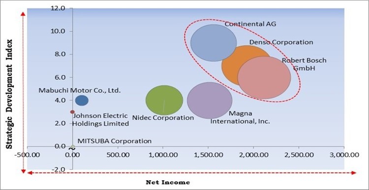 The major strategies followed by the market participants are Product Launches. Based on the Analysis presented in the Cardinal matrix; Continental AG, Denso Corporation, Robert Bosch GmbH are the forerunners in the Electric Vehicle Motor Market. Companies such as Nidec Corporation, Magna International, Inc., Johnson Electric Holdings Limited are some of the key innovators in Electric Vehicle Motor Market.