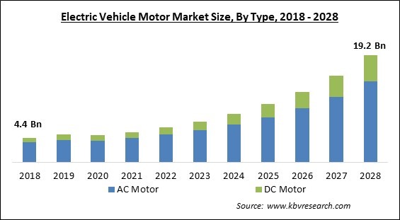 The Global Electric Vehicle Motor Market size is expected to reach $19.2 billion by 2028, rising at a market growth of 20.4% CAGR during the forecast period.