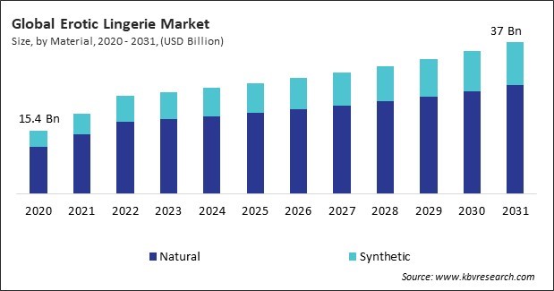 The Global Erotic Lingerie Market size is expected to reach $37 billion by 2031, rising at a market growth of 5.3% CAGR during the forecast period. In the year 2023, the market attained a volume of 896,935.13 thousand units experiencing a growth of 18.8% (2020-2023).