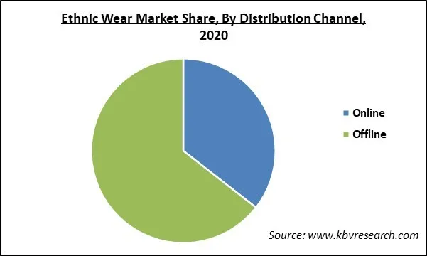 Based on End Users, the ethnic wear market is classified into men, women, and children. Men end-user segment procured a substantial revenue share in 2020 and is anticipated to witness a considerable growth rate during the forecast period. The rise in the number of aspiring fashion designers, the increasing popularity of fashion wear among millennials, and the advent of mass & digital marketing strategies by numerous fashion brands have significantly transformed the dynamics of the ethnic wear market for men across the world. Ethnic wear is one of the essential apparel in any person’s wardrobe during festivals and weddings.