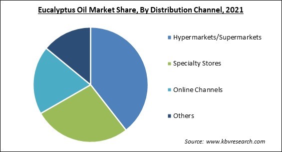 Based on Application, the market is segmented into Therapeutics & Cosmetics, Food & Hypermarkets/ Beverages, Aromatherapy, and Fragrances. The therapeutics & cosmetics segment garnered the largest revenue share in the Eucalyptus Oil Market in 2021. The eucalyptus oil market is predicted to grow due to rising cosmetics companies' initiatives to substitute synthetic chemicals with natural products, as well as increasing customer awareness of organic cosmetics' medical benefits. Eucalyptus oil boosts ceramide synthesis, which helps to keep the skin moisturized, relieve irritation, and prevent UVB-induced collagen breakdown.