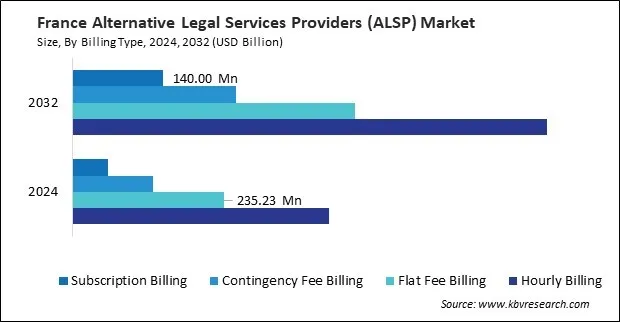 Based on Billing Type, the market is segmented into Hourly Billing, Flat Fee Billing, Contingency Fee Billing, and Subscription Billing. Based on Services, the market is segmented into Corporate, Litigation, Taxation, Labor/Employment, Real Estate, and Bankruptcy. Based on countries, the market is segmented into Germany, UK, France, Russia, Spain, Italy, and Rest of Europe.