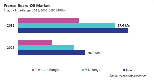 Mid-price range beard oils have carved a significant niche in the grooming market, offering a balance between quality and affordability. These products typically utilize high-quality natural ingredients like jojoba oil, argan oil, and essential oils, which provide numerous benefits such as moisturizing the skin beneath the beard, reducing itchiness, and promoting healthier, shinier hair. Thus, the Germany market consumed 3,361.57 thousand units of this oil in 2023.