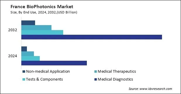 Based on Technology, the market is segmented into In-Vitro, and In-Vivo. Based on End Use, the market is segmented into Medical Diagnostics, Tests & Components, Medical Therapeutics, and Non-medical Application. Based on Application, the market is segmented into See-Through imaging, Microscopy, Inside Imaging, Spectro Molecular, Analytics Sensing, Light Therapy, Surface Imaging, and Biosensors & Others. Based on countries, the market is segmented into Germany, UK, France, Russia, Spain, Italy, and Rest of Europe.
