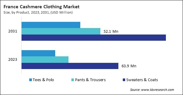 The Germany market dominated the Europe Cashmere Clothing Market by Country in 2023, and would continue to be a dominant market till 2031; thereby, achieving a market value of $328.6 million by 2031. The UK market is exhibiting a CAGR of 4.9% during (2024 - 2031). Additionally, The France market would experience a CAGR of 6.2% during (2024 - 2031).