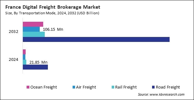 The Germany market dominated the Europe Digital Freight Brokerage Market by Country in 2024, and would continue to be a dominant market till 2032; thereby, achieving a market value of $2021.3 million by 2032. The UK market is exhibiting a CAGR of 24% during (2025 - 2032). Additionally, The France market would experience a CAGR of 26% during (2025 - 2032).