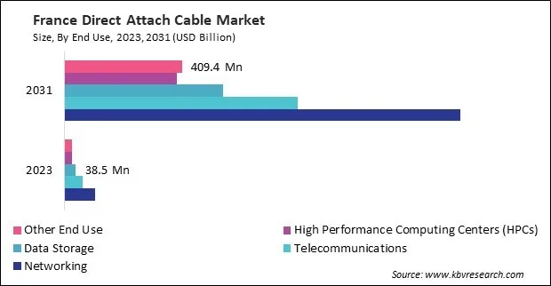 Based on Type, the market is segmented into Direct Attach Copper Cable (Passive Direct Attach Copper Cable, and Active Direct Attach Copper Cable), and Active Optical Cable. Based on End Use, the market is segmented into Networking, Telecommunications, Data Storage, High Performance Computing Centers (HPCs), and Other End Use. Based on Form Factor, the market is segmented into QSFP, SFP, CXP, Cx4, CFP, and CDFP. Based on countries, the market is segmented into Germany, UK, France, Russia, Spain, Italy, and Rest of Europe.