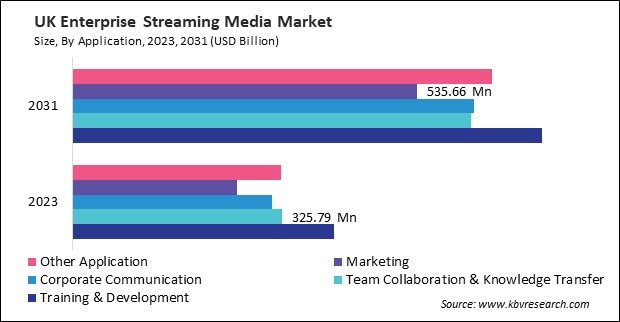 The Germany market dominated the Europe Enterprise Streaming Media Market by Country in 2023, and would continue to be a dominant market till 2031; thereby, achieving a market value of $3,572.3 million by 2031. The UK market is exhibiting a CAGR of 8.9% during (2024 - 2031). Additionally, The France market would experience a CAGR of 10.9% during (2024 - 2031).
