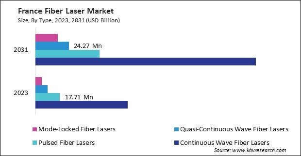 The Germany market dominated the Europe Fiber Laser Market by Country in 2023, and would continue to be a dominant market till 2031; thereby, achieving a market value of $411.1 million by 2031. The UK market is exhibiting a CAGR of 10.6% during (2024 - 2031). Additionally, The France market would experience a CAGR of 12.5% during (2024 - 2031).