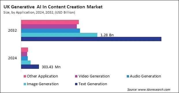 The Germany market dominated the Europe Generative AI In Content Creation Market by Country in 2024, and would continue to be a dominant market till 2032; thereby, achieving a market value of $7,085 million by 2032. The UK market is exhibiting a CAGR of 30.3% during (2025 - 2032). Additionally, The France market would experience a CAGR of 32.7% during (2025 - 2032).