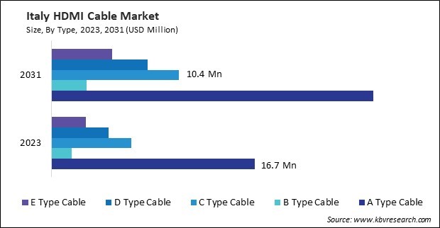 The Germany market dominated the Europe HDMI Cable Market by Country in 2023, and would continue to be a dominant market till 2031; thereby, achieving a market value of $203 million by 2031. The UK market is exhibiting a CAGR of 2.6% during (2024 - 2031). Additionally, The France market would experience a CAGR of 2.6% during (2024 - 2031).