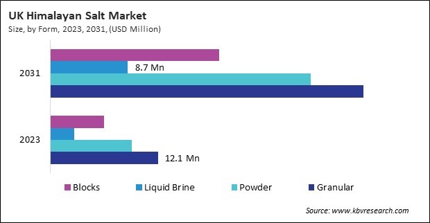 The Germany market dominated the Europe Himalayan Salt Market by Country in 2023, and would continue to be a dominant market till 2031; thereby, achieving a market value of $114,457.7 Thousands by 2031. The UK market is exhibiting a CAGR of 16.2% during (2024 - 2031). Additionally, The France market would experience a CAGR of 18.1% during (2024 - 2031).