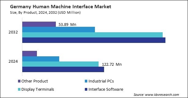 Based on Application, the market is segmented into Automotive, Packaging, Oil & Gas, Food & Beverages, and Other Application. Based on Product, the market is segmented into Interface Software, Display Terminals, Industrial PCs, and Other Product. Based on countries, the market is segmented into Germany, UK, France, Russia, Spain, Italy, and Rest of Europe.