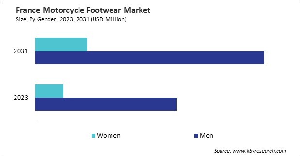 The Germany market dominated the Europe Motorcycle Footwear Market by Country in 2023, and would continue to be a dominant market till 2031; thereby, achieving a market value of $257.5 million by 2031. The UK market is exhibiting a CAGR of 4.8% during (2024 - 2031). Additionally, The France market would experience a CAGR of 6.6% during (2024 - 2031).