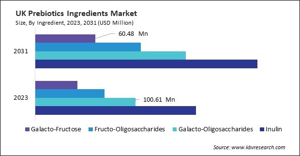The Germany market dominated the Europe Prebiotics Ingredients Market by Country in 2023, and would continue to be a dominant market till 2031; thereby, achieving a market value of $657.8 million by 2031. The UK market is exhibiting a CAGR of 4.9% during (2024 - 2031). Additionally, The France market would exhibit a CAGR of 6.4% during (2024 - 2031).
