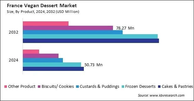 The Germany market dominated the Europe Vegan Dessert Market by Country in 2024, and would continue to be a dominant market till 2032; thereby, achieving a market value of $526.2 million by 2032. The UK market is exhibiting a CAGR of 9.9% during (2025 - 2032). Additionally, The France market would experience a CAGR of 11.7% during (2025 - 2032).