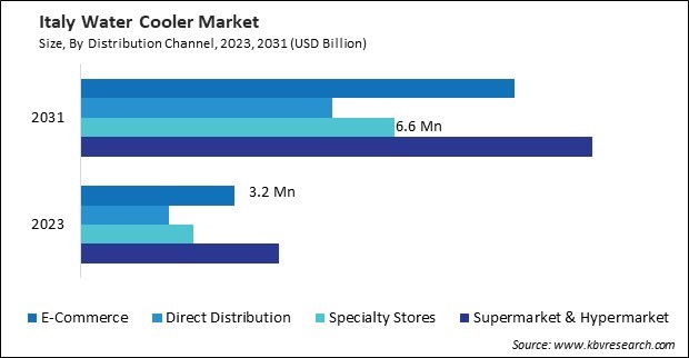 Based on Application, the market is segmented into Commercial, and Residential. Based on Distribution Channel, the market is segmented into Supermarket & Hypermarket, Specialty Stores, Direct Distribution, and E-Commerce. Based on Product Type, the market is segmented into Bottleless Water Cooler, Bottled Water Cooler, and Top Load Water Cooler. Based on countries, the market is segmented into Germany, UK, France, Russia, Spain, Italy, and Rest of Europe.
