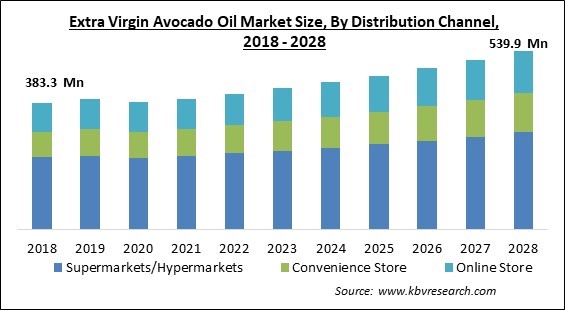 The Supermarkets/Hypermarkets market is leading the Global Extra Virgin Avocado Oil Market by Distribution Channel in 2021; thereby, achieving a market value of $294.8 million by 2028.
