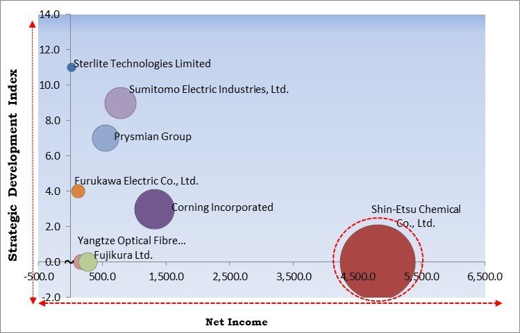 Based on the Analysis presented in the KBV Cardinal matrix; Shin-Etsu Chemical Co., Ltd. is the major forerunner in the Market. Companies such as Sterlite Technologies Limited, Corning Incorporated and Sumitomo Electric Industries, Ltd. are some of the key innovators in the Market. In February, 2019, Sumitomo Electric Industries teamed up with Optoscribe, a supplier of 3D glass-based integrated photonics components. The collaboration is aimed at addressing the performance challenges faced by datacom and telecom applications and for further deployment of multicore fiber and related technologies.