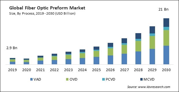 The Global Fiber Optic Preform Market size is expected to reach $21 billion by 2030, rising at a market growth of 20.5% CAGR during the forecast period.
