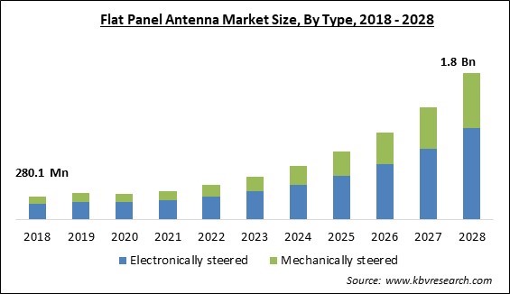 The Global Flat Panel Antenna Market size is expected to reach $1.8 billion by 2028, rising at a Market growth of 26.9% CAGR during the forecast period.