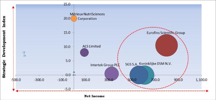 ALS Limited, Koninklijke DSM N.V. (Erber Group), SGS S.A., Eurofins Scientific Group, EMSL Analytical, Inc., FoodChain ID Group, Inc., Intertek Group PLC, Microbac Laboratories, Inc., LGC Science Group Holdings Limited, and Mérieux NutriSciences Corporation (Institut Mérieux).