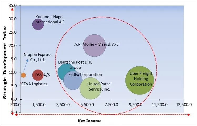 Kuehne + Nagel International AG (Kuehne Holding AG), Deutsche Post DHL Group (The Deutsche Post AG), Deutsche Bahn AG (DB Schenker), DSV A/S, FedEx Corporation, Nippon Express Co., Ltd., A.P. Moller - Maersk A/S, CEVA Logistics (CMA CGM Group), Uber Freight Holding Corporation (Uber Technologies, Inc.), and United Parcel Service, Inc.