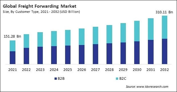 The Global Freight Forwarding Market size is expected to reach $310.11 billion by 2032, rising at a market growth of 5.0% CAGR during the forecast period.