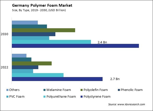 One of the primary drivers of the polymer foam market in Germany is the automotive industry. Polymer foams are extensively used in automotive applications to reduce weight, enhance fuel efficiency, and improve overall vehicle performance. According to the Germany Trade & Invest, German automobile manufacturers produced over 15.6 million vehicles in 2021. With Germany being a global hub for automotive manufacturing and innovation, this sector's demand for polymer foams remains robust. Additionally, stringent regulations to reduce carbon emissions have further propelled the adoption of lightweight materials like polymer foams in the automotive industry.