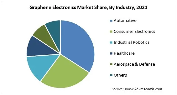 Based on industry, the graphene electronics market is categorized into consumer electronics, automotive, healthcare, industrial robotics, aerospace & defense, and others. The automotive segment garnered the highest revenue share in the graphene electronics market in 2021. With numerous essential uses, including tires, electronics, fluids, and fluidic systems, graphene exhibits significant potential and drives the segment's growth. Since touchscreens and liquid-crystal displays (LCDs) are the most common types of user interfaces, graphene is a desirable material that might be employed in various user interfaces.