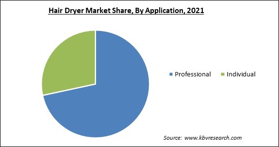 The Professional market shows high market share in the Global Hair Dryer Market by Application in 2021, thereby, achieving a market value of $7.1 billion by 2028.