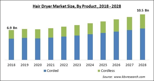 The Global Hair Dryer Market size is expected to reach $10.5 billion by 2028, rising at a market growth of 5.3% CAGR during the forecast period.