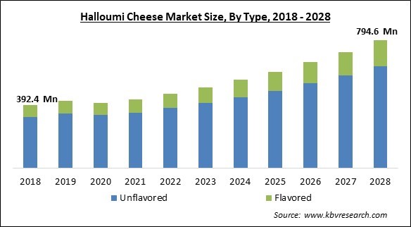 The Global Halloumi Cheese Market size is expected to reach $794.6 Million by 2028, rising at a market growth of 9.4% CAGR during the forecast period.