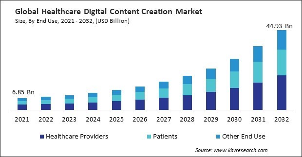 The Global Healthcare Digital Content Creation Market size is expected to reach $44.93 billion by 2032, rising at a market growth of 21.8% CAGR during the forecast period.